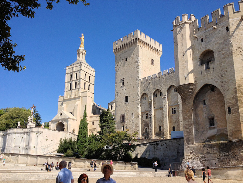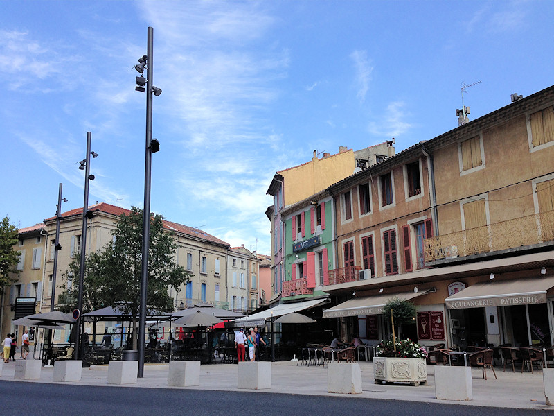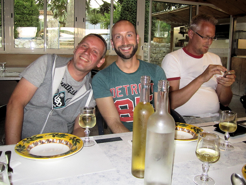 | Nobler Zwischenstopp auf der Gartenterrasse des Salon du Thé im Le Clair de la Plume, 2, place du mail, 26230 Grignan v.l.n.r.: Lutz, Tobias, Andi, Jens, . |