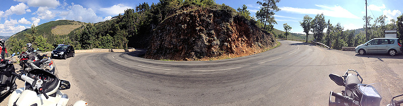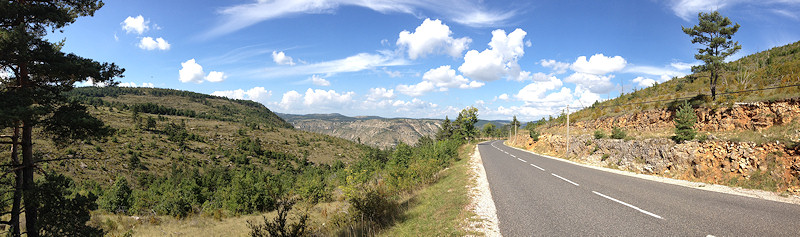 | Tour 6. Jens in Schräglage Richtung Corniche des Cevennes. |
