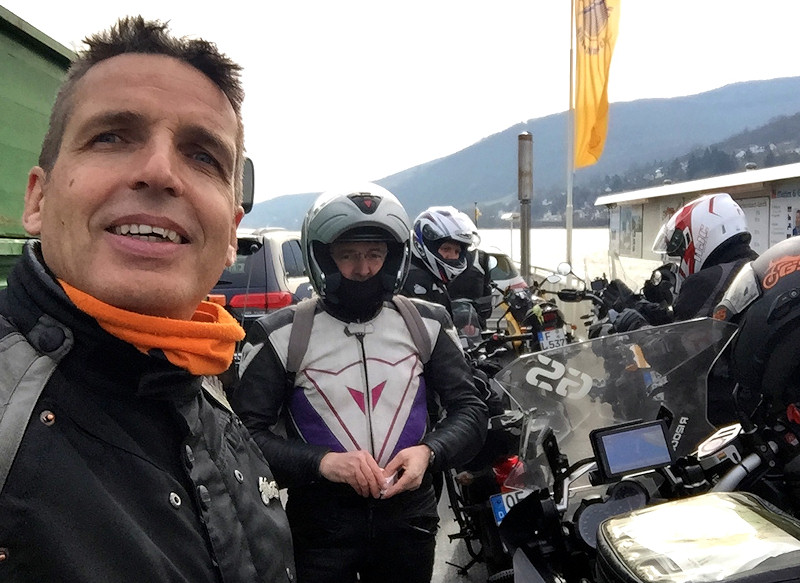 ... auf die Fähre und e´nibber! Vorne Helmut.