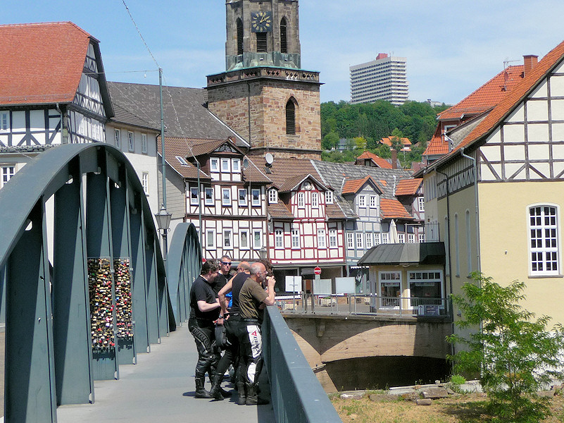 Der anschließende Rundgang brachte uns natürlich über die Fulda. Im Hintergrund die Bau-Sünden der Siebziger z.B. die BKK-Akademie!