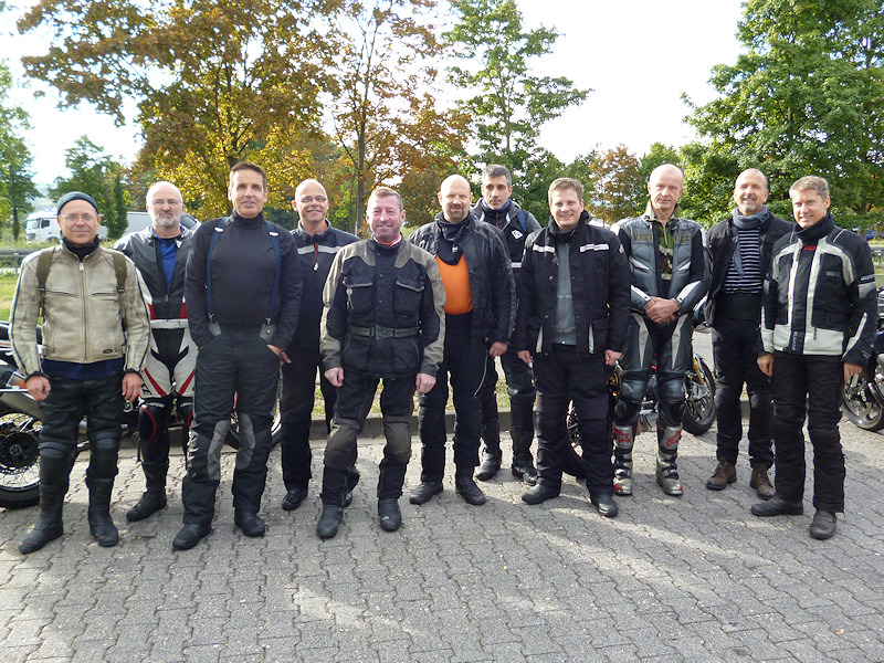 Erich, Manni, Hagen, Georg, Reiner, Jochen, Matthias, Andi, Helmut, Gerhard und Armin hatte fotogafiert. Das war die Gruppe am Treffpunkt.