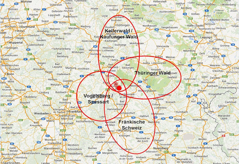 Deutschland und die Tourenmöglichkeiten in jede Himmelsrichtung. Für alle Teilnehmer sollte die Anfahrt in einem Tag problemlos zu bewältigen sein. |